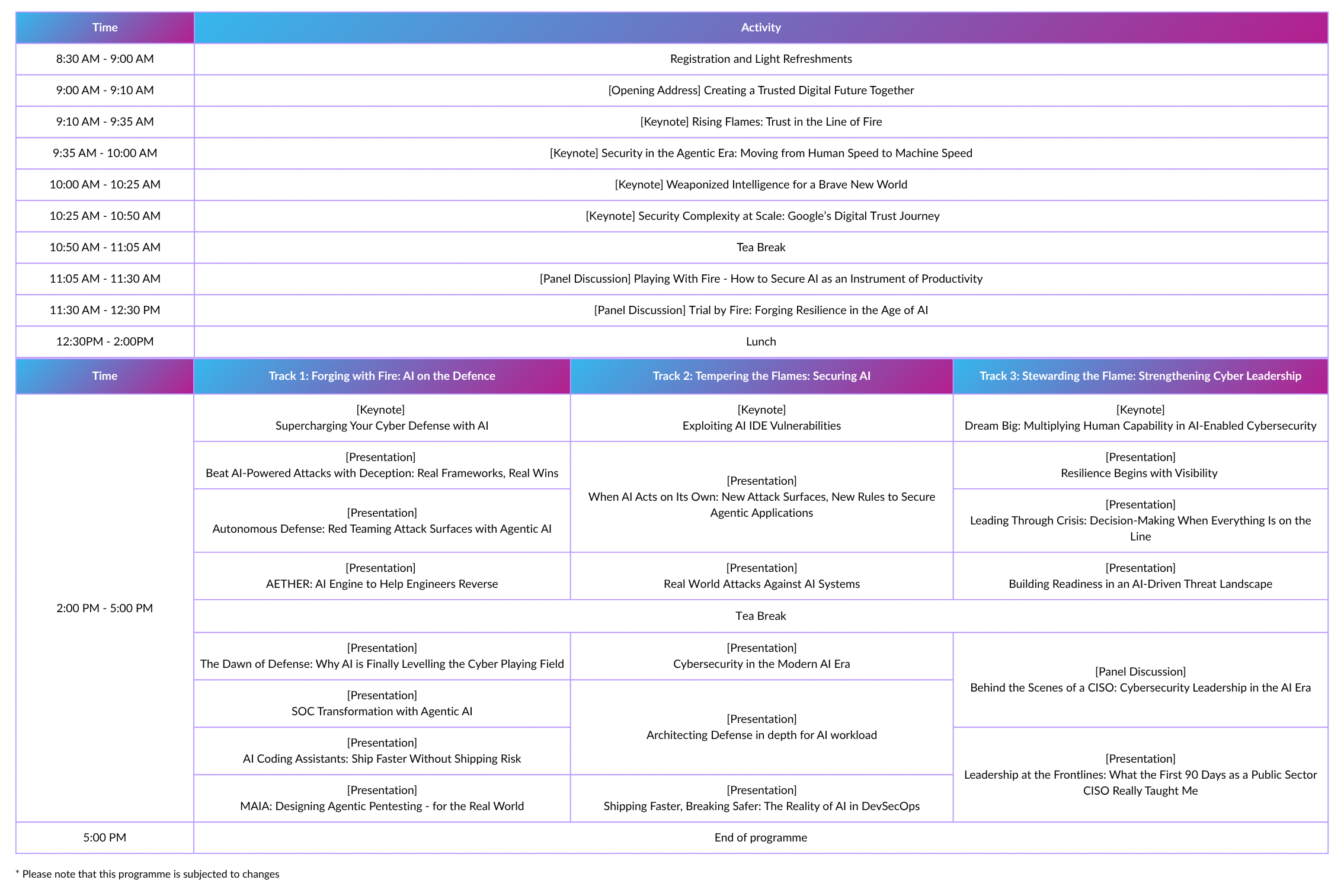 In the past decade, the Singapore government has transformed its service delivery model, moving from paper forms and manual processes to seamless digital services. But rapid digitalisation has come at a cost. The government’s digital attack surface has exploded, expanding from a few centralised websites and gateways to a sprawling, inter-dependent ecosystem of apps, APIs and SaaS platforms. Now, AI is making cybersecurity even harder, as it brings new risks and challenges that we’re still learning to navigate. In this keynote, we will explore concrete examples of how GovTech has strengthened the government’s cybersecurity posture in the past decade. We will also examine some of the salient risks of AI and share what GovTech has been doing to mitigate them. Ultimately, no single organisation has all the answers. The only way forward is to work together, embrace uncertainty, and invest in our people. Only then can we continue to uphold digital trust and harness the flames of AI for good.